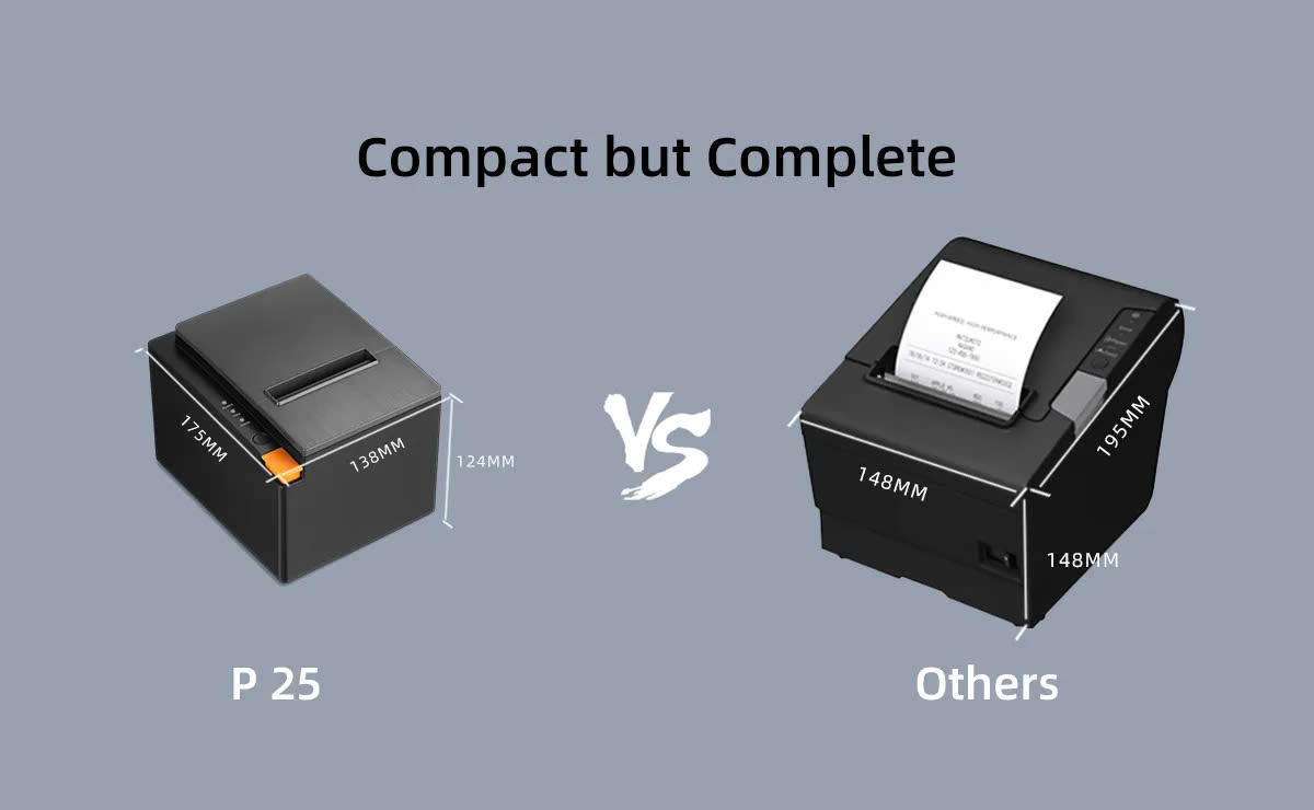 Với kích thước chỉ 175*138*124mm và trọng lượng nhẹ 1,4kg, Elanda P25 dễ dàng lắp đặt ở mọi vị trí, kể cả những quầy thu ngân có diện tích hạn chế. Thiết kế hiện đại, tối giản giúp máy hài hòa với nhiều phong cách nội thất, mang đến vẻ chuyên nghiệp và gọn gàng cho không gian bán hàng.