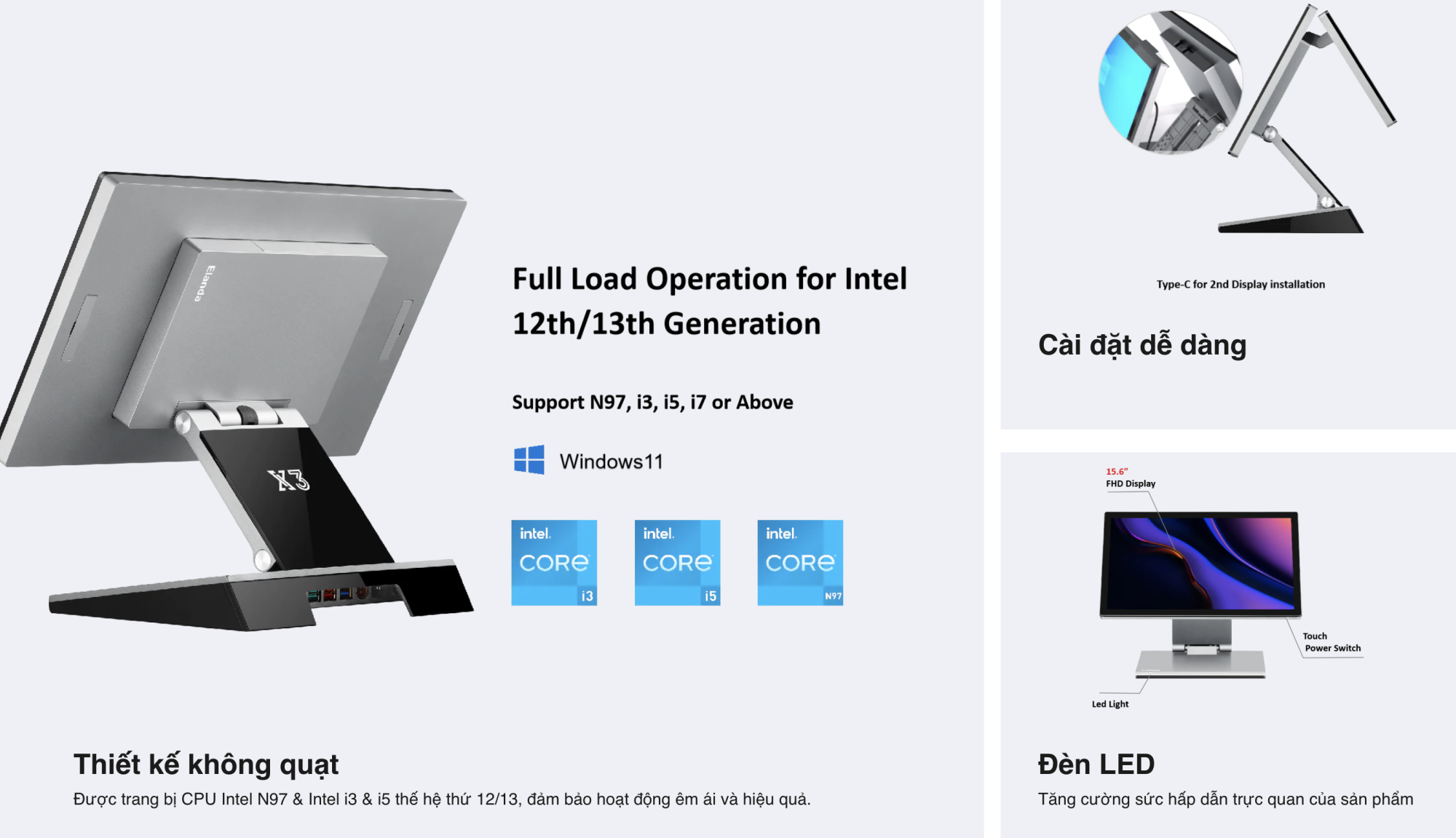 - Intel® Core™ i5-1335U – Cấu hình cao cấp, xử lý đa nhiệm mượt mà, lý tưởng cho nhà hàng, siêu thị và chuỗi bán lẻ lớn.