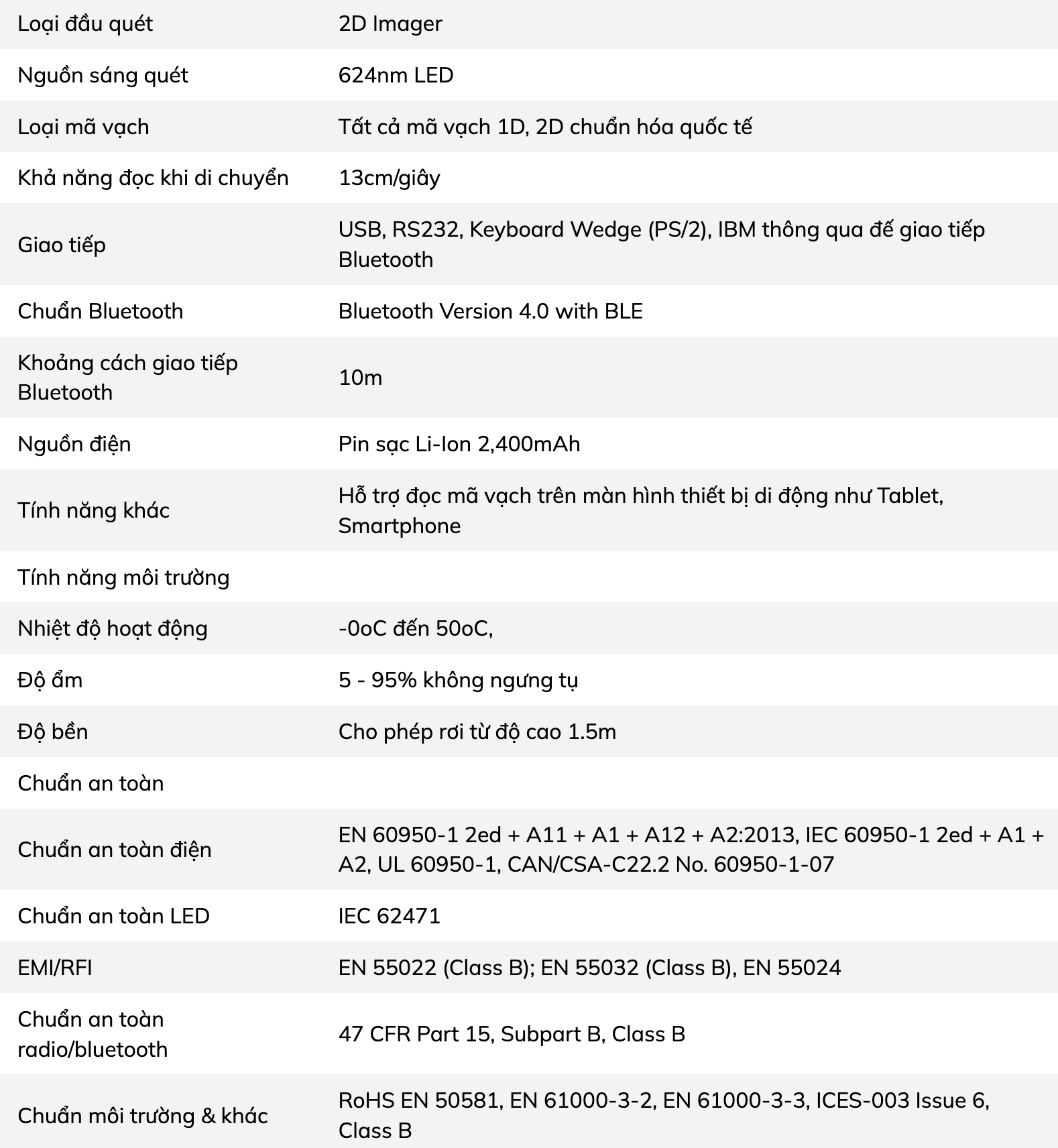 Zebra DS2278 là dòng máy quét mã vạch Qrcode không dây nổi bật với hiệu suất quét mạnh mẽ, được thiết kế tối ưu để dễ dàng tích hợp vào hệ thống POS với Bluetooth 4.0 cùng dung lượng PIN 2.400mAh, đảm bảo tính linh hoạt khi sử dụng trong không gian rộng. DS2278 là lựa chọn tối ưu cho các Doanh nghiệp bán lẻ, siêu thị, cửa hàng tiện lợi,...