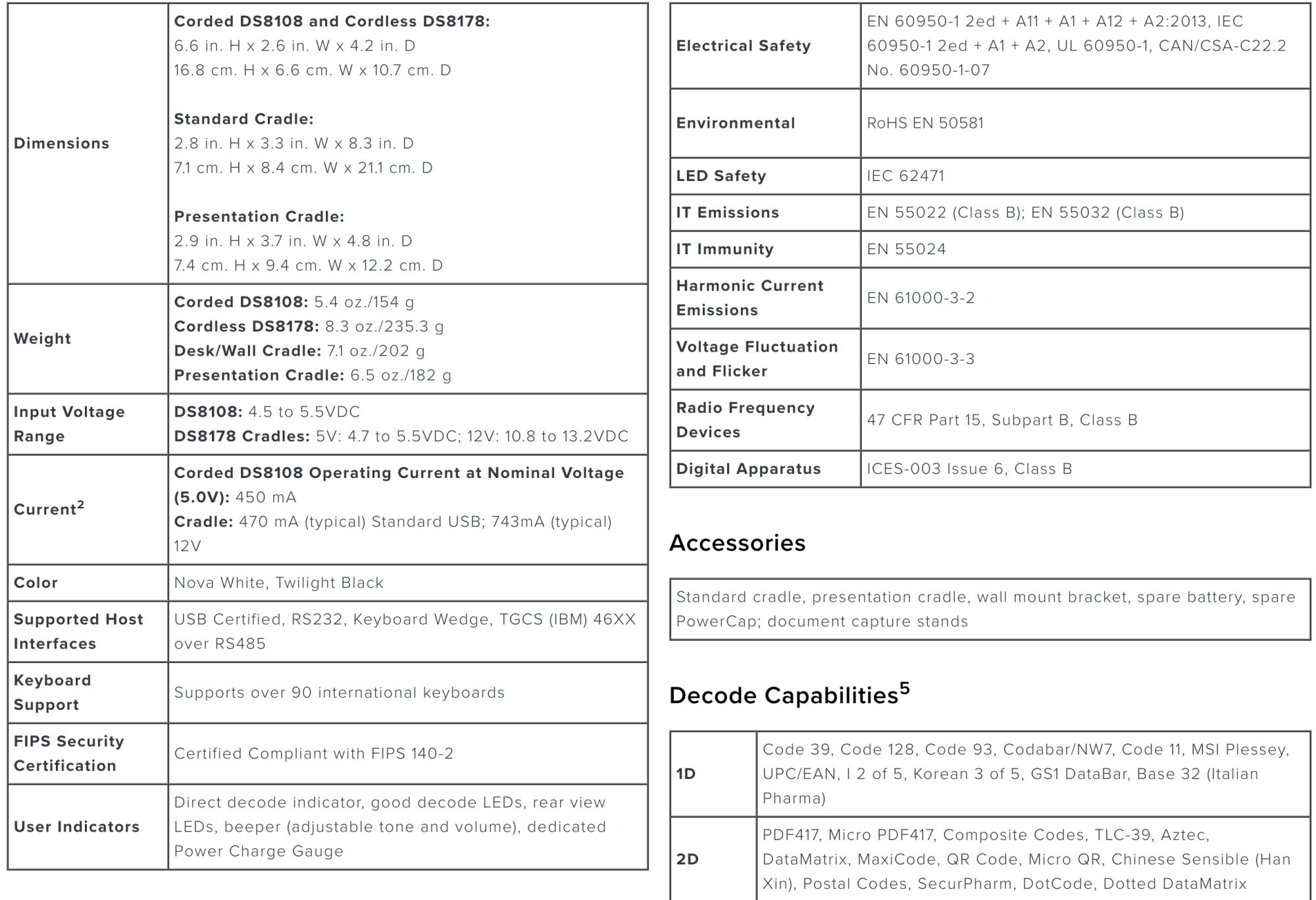Thông số Kỹ thuật của Máy quét Qrcode Bluetooth Zebra DS8178