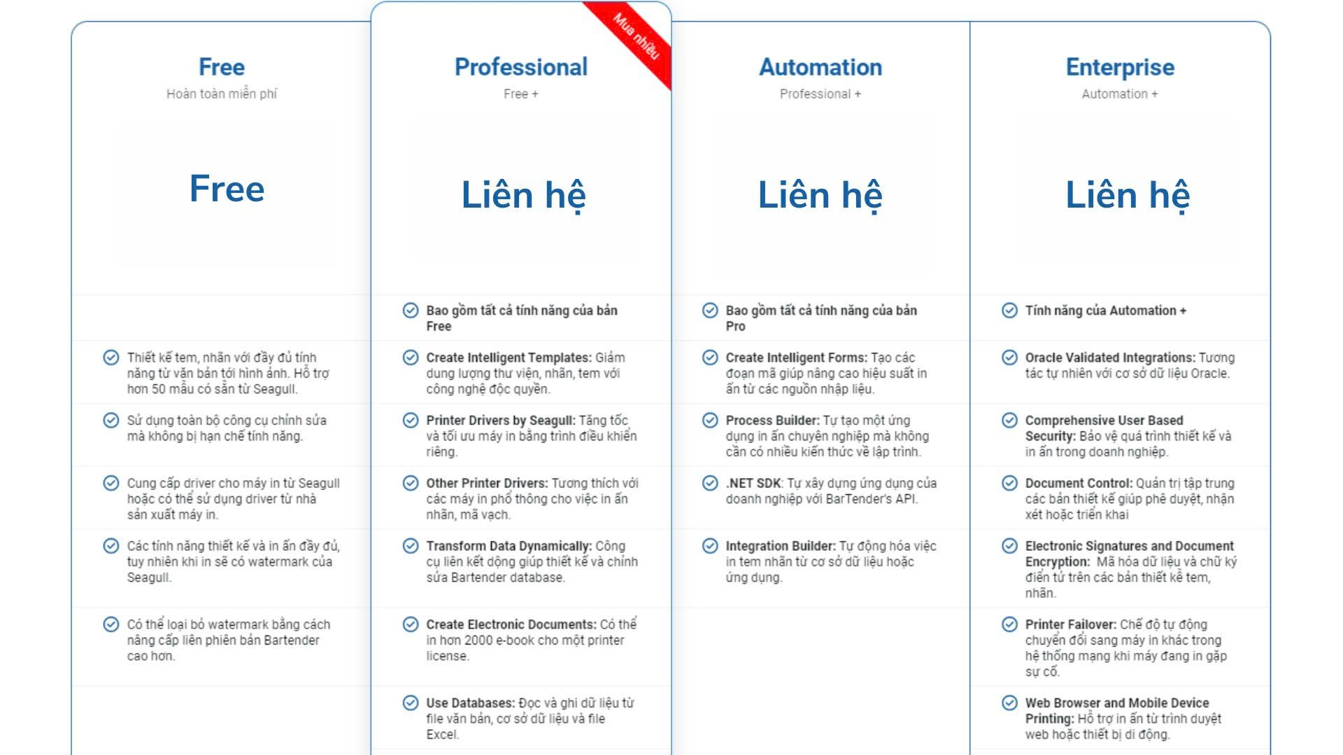 3. Các Phiên Bản BarTender Phổ Biến